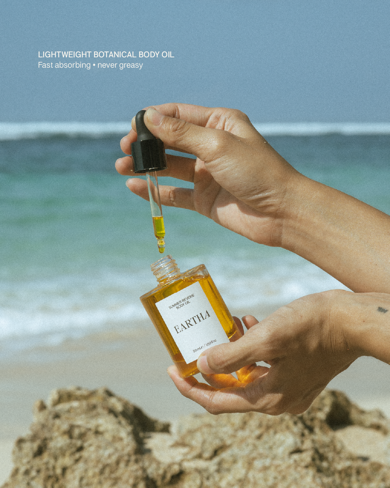 Summer Reverie Body Oil melts effortlessly into skin, delivering lasting moisture while leaving a soft, satin finish. No stickiness, just comfortable, well-nourished skin throughout the day.